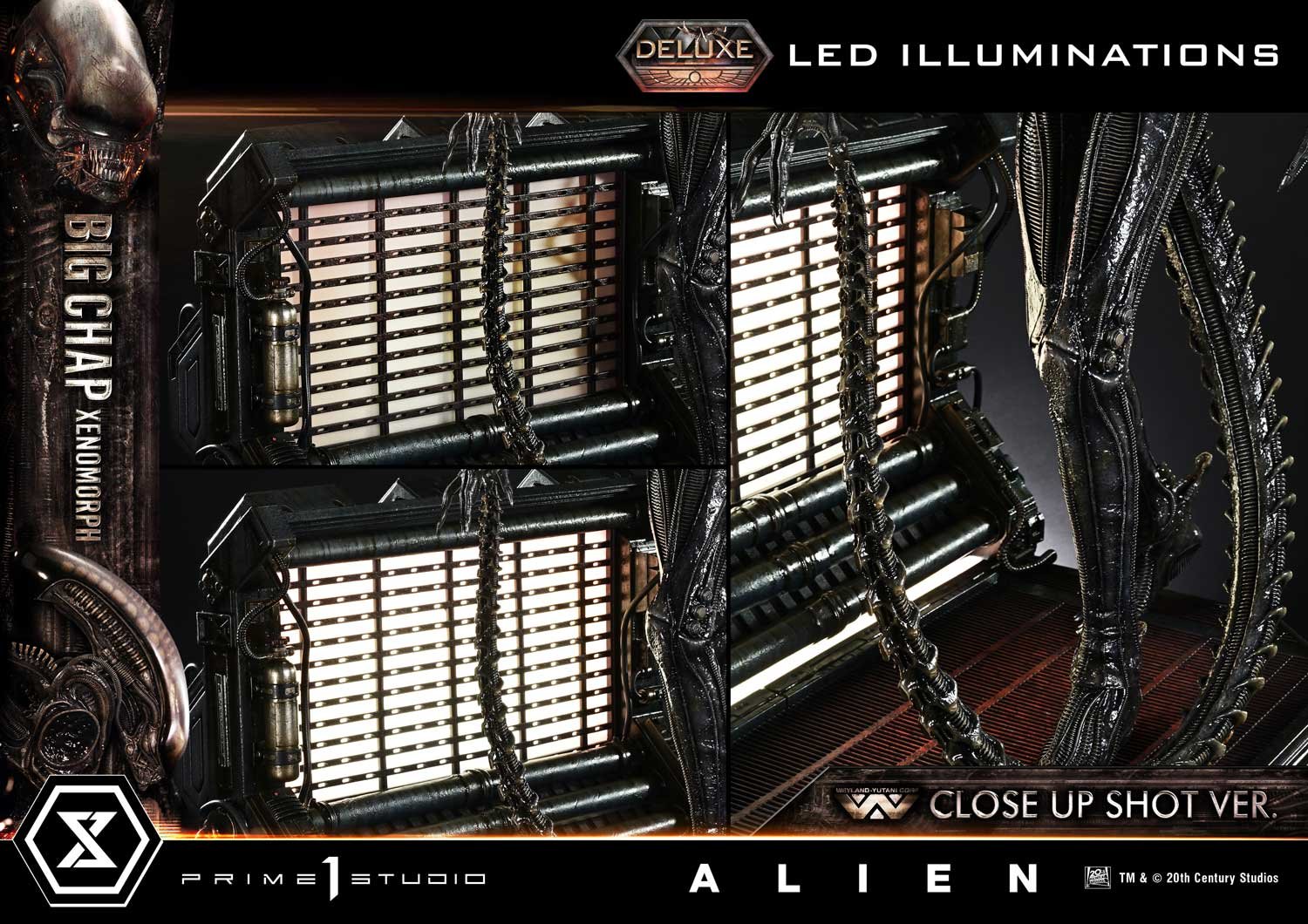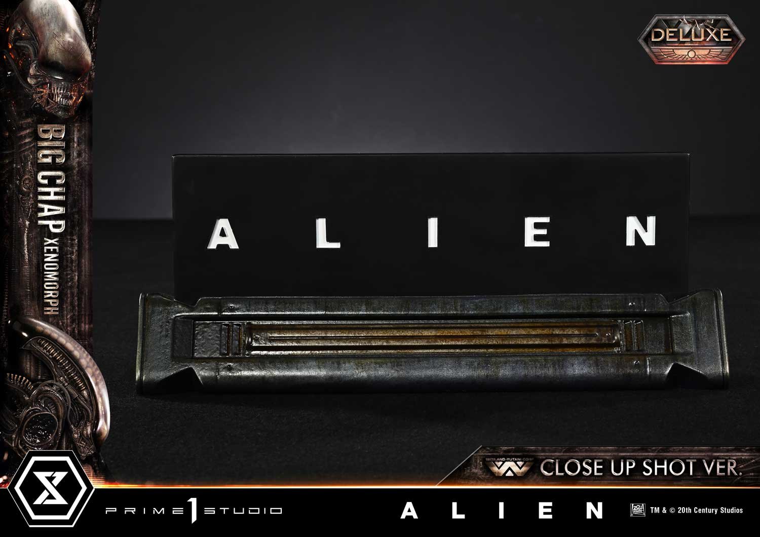 La «cabeza de Rambaldi» definió el aspecto icónico del Big Chap. Esta estatua mide 100 cm de altura a escala 1/3 y presenta la cabeza del primer plano basada en el trabajo del artista de efectos visuales Carlo Rambaldi. La transparencia de la capucha, la compleja estructura alrededor de la boca y los huecos derivados de su diseño esquelético: cada elemento se ha recreado teniendo en cuenta la precisión de la pantalla. Su inquietante pose, imposible de descifrar a simple vista, también refleja la alta estatura y la complexión física de Bolaji Badejo, quien interpretó a la criatura. Envuelta en detalles finamente representados, transmite la tensión asfixiante de un espacio confinado.